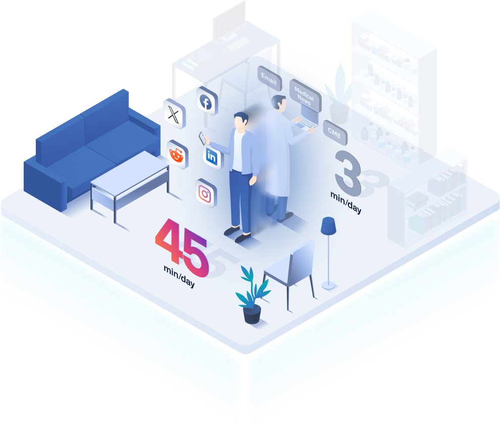 Doctors are people too. They spend an average of 45 min per day on Social and other Non-Professional channels.